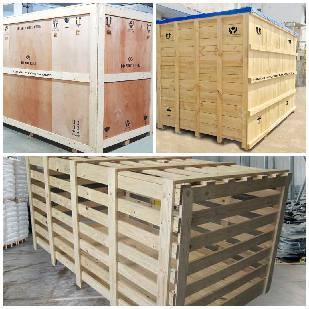 Plywood boxes, wooden boxes and crates for heavy and sensitive cargo requiring robust protection.